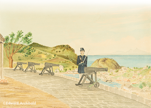August Nyman voit le jour le 13 août 1779 à Stockholm. Il débarque à St Barthélemy le 9 juillet 1802 et prend alors son poste dans la garnison en tant que Caporal. Signe s’il en est d’une destinée singulière, son arrivée coïncide, à un jour près, au départ des Britanniques. Ces derniers qui avaient occupé St Barthélemy depuis mars 1801, quittent Gustavia le 10 juillet 1802. Exceptées les premières pierres du fort anglais édifié à la sueur des esclaves, ils abandonnent l’île dans un état pitoyable. Au début du 19ème siècle, St Barthélemy vit une période agitée. Le caporal âgé alors de 23 ans, est rapidement confronté à la réalité. La garnison suédoise, usuellement composée d’une trentaine de soldats, ne peut compter qu’une dizaine d’hommes valides, parmi lesquels on retrouve l’auguste Nyman. A la suite d’une attaque de corsaires français en 1807, une milice est alors créée dans l’objectif d’apporter un renfort à une garnison en mauvaise santé. Le 22 septembre 1810, le Gouverneur Hans Henrik Ankarheim, donne l’ordre de désarmer cette police citoyenne. Les miliciens, avec à leur tête des marchands influents, s’insurgent de cette décision et le mécontentement de ces derniers se transforme rapidement en révolte. Le terme exact se rapprocherait plus de mutinerie, car l’événement fut rapide, sans recours à une force excessive, sans victimes, sans dégradation et dans un cadre militaire. Les dessous de cette insurrection manquent quelque peu de clarté et s’inscrivent dans un contexte singulier. En effet, sur les îles de la Caraïbe, les esprits sont influencés par les événements extérieurs, dans l’ombre des guerres napoléoniennes et dans le prolongement des Révolutions française et américaine. Royalistes et républicains s’affrontent pour le contrôle des colonies, la révolte haïtienne, sous l’impulsion première de Toussaint Louverture, donne des envies de liberté, la politique raciale s’oppose à l’évolution humaniste… Au sein même de la petite colonie, le concept d’identité nationale s’insinue. Les naturalisations vont bon train, mais les nouveaux suédois ne disposent pas des même droits politiques que ceux accordés aux natifs. Frustration, intérêt personnel et allégeance s’opposent à la rigidité du gouvernement en place. Le tout assaisonné du caractère insulaire de près de 5000 habitants, rien qu’à Gustavia, port de marins accoutumés à la piraterie, sont autant de raisons motivant ladite mutinerie. La colère gronde dans les rues.