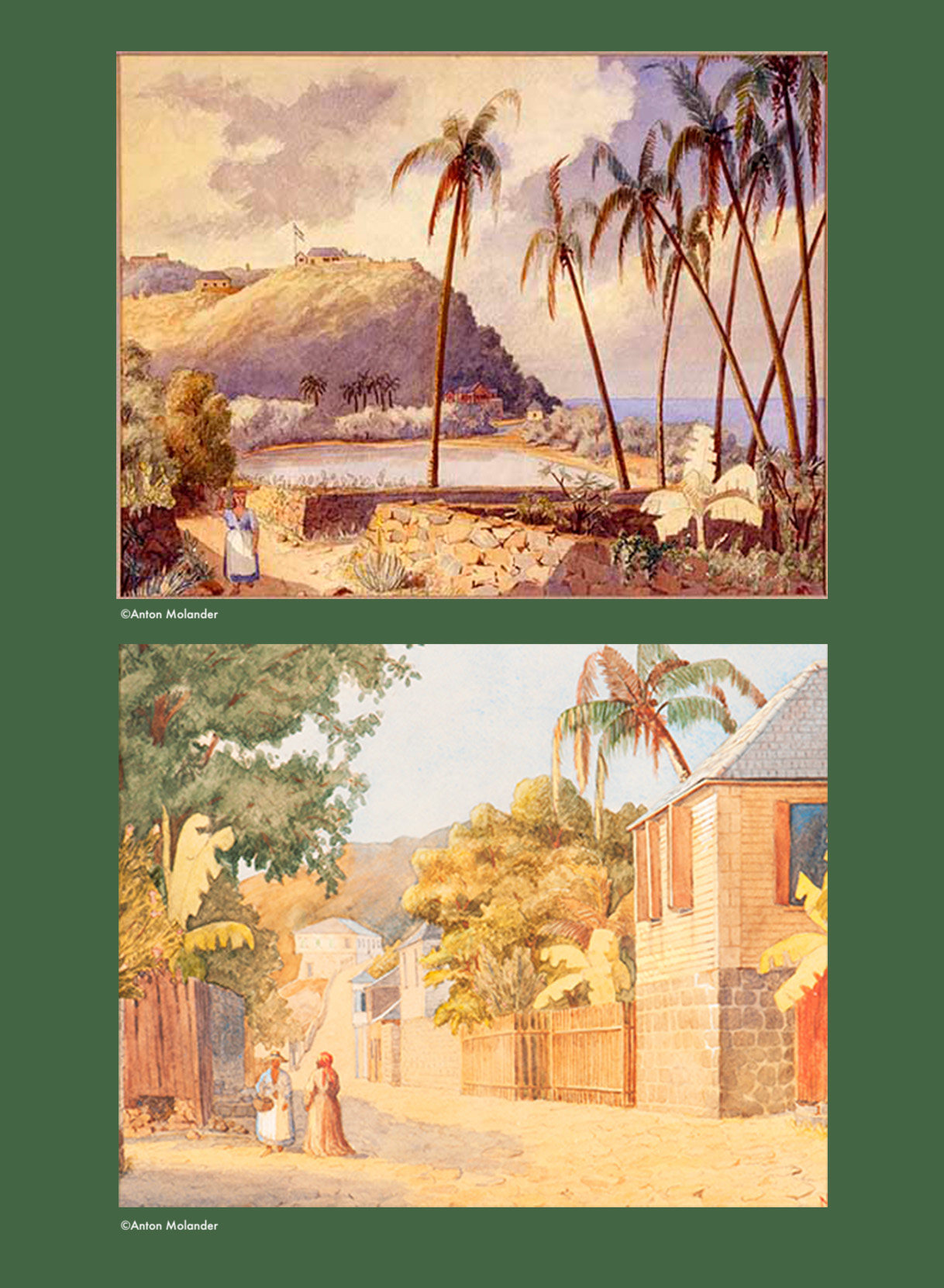 En ville, où flotte le drapeau aux couleurs bleu et jaune, un kaléidoscope de nationalités se côtoyait au début de la période suédoise. Les ruelles qui s'animaient des récits venus d'ailleurs sont, au milieu du 19ème siècle, un peu plus désertes. Les bâtiments édifiés par les mains contraintes des esclaves, témoignent encore aujourd’hui du passage suédois. Aux immeubles, s’ajoutent la construction de citernes, permettant de recueillir le précieux liquide tombé du ciel.