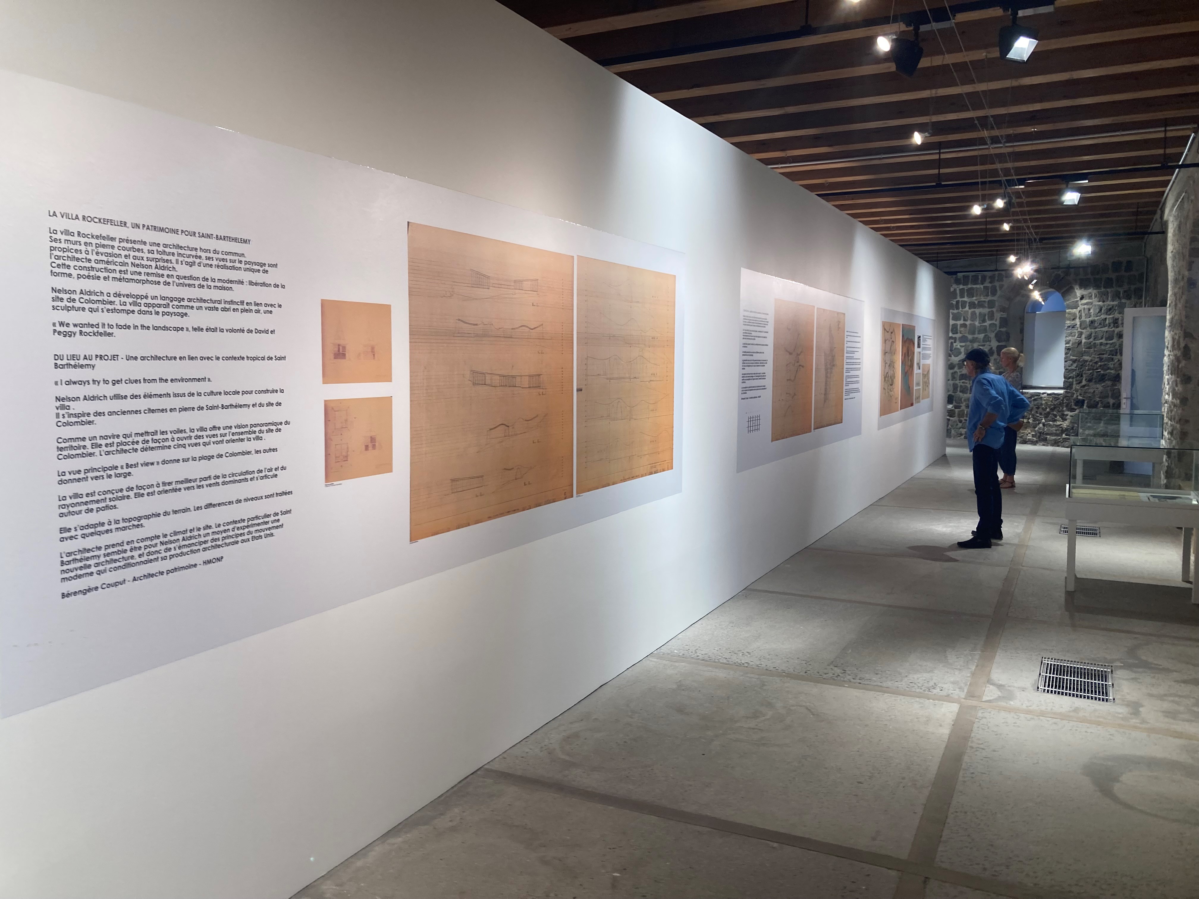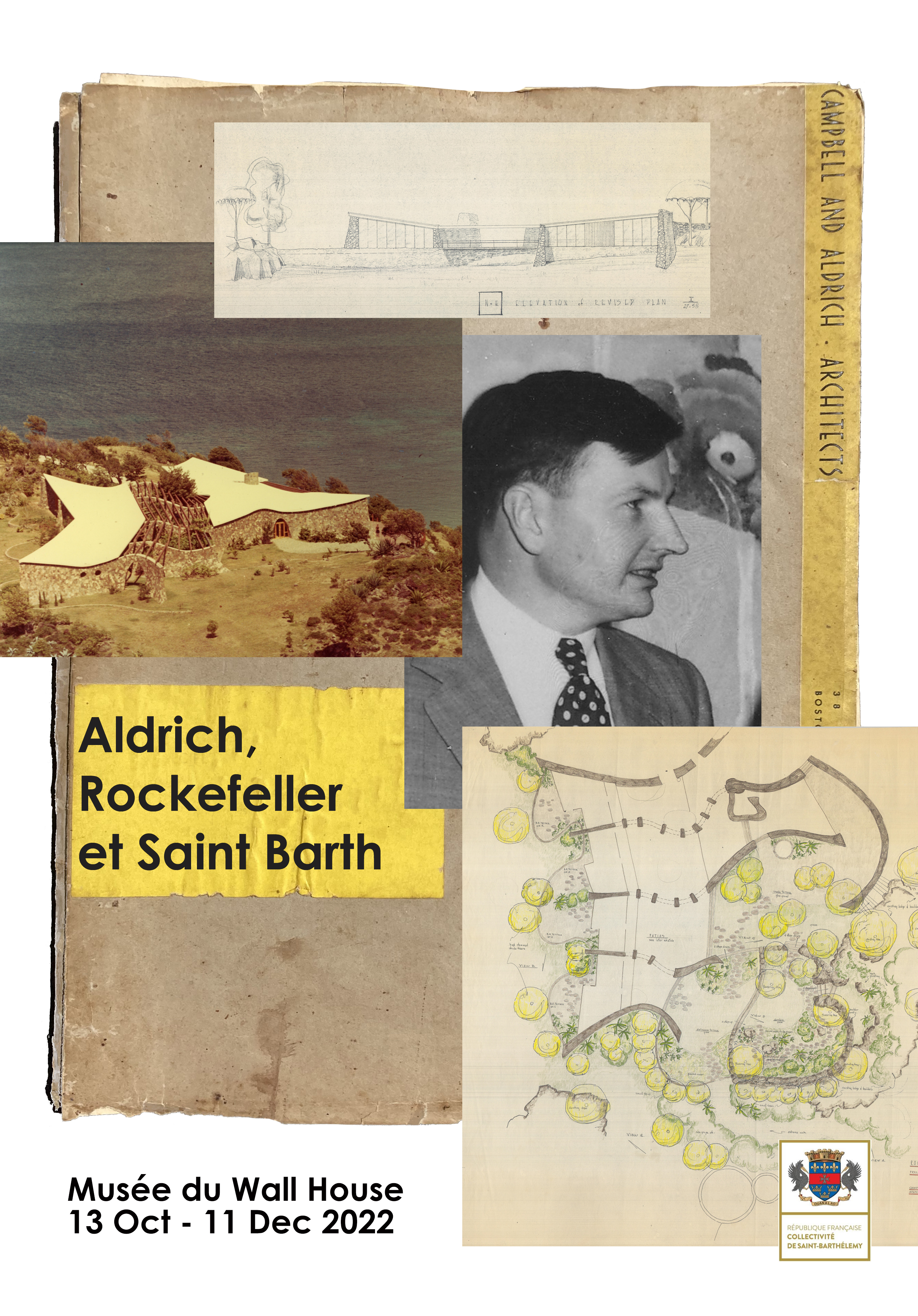 Cette exposition, qui a demandé un an de recherche et mobilisé les ressources et souvenirs de nombreux Saint Barths, puise dans des sources jusqu’alors inexplorées pour mettre au jour une foule de documents inédits qui permettent de se faire une meilleure idée de la construction de cette fameuse villa communément appelée Villa Rockefeller, de son esthétique, des défis liés à sa construction, de son impact sur la population locale et des différents degrés d’innovation dont elle a pu être la tête de pont à une époque où il n’y avait pas de résidences secondaires sur l’île. En 1957 quand David Rockefeller (1915 – 2017) achète le terrain de Colombier il représente ce que l’Amérique a de plus riche, l’incarnation d’un certain capitalisme industriel et financier. Héritier d’une famille connue pour ses capacités économiques et son influence politique, éduqué dans les meilleures écoles de la Nouvelle Angleterre, c’est un homme moderne, actif, mais étonnement simple dans ses rapports humains qui tombe amoureux de Saint Barthélemy et de ses habitants. Et qui n’aura qu’une obsession à partir de ce moment : protéger cette île qu’il aime de la spéculation hôtelière, du développement des resorts qui fleurissent alors partout dans les Antilles et des dégâts d’un progrès trop rapide qui tuerait le charme fragile et simple du lieu.Nelson Aldrich (1911 – 1975), l’architecte du projet, est lui aussi un homme résolument moderne. Cousin par sa mère de David Rockefeller les deux hommes se connaissent bien et s’apprécient depuis longtemps. Nelson Aldrich, troisième du nom, est issu d’une lignée moins riche mais presqu’aussi prestigieuse que son illustre cousin. Un grand père sénateur du Rhode Island, un père architecte pour la plus haute société de la Nouvelle Angleterre, lui aussi est passé par les meilleures écoles : dans son cas la Harvard School of Design, où il étudie sous l’enseignement conjoint de Marcel Breuer et de Walter Gropius, deux des architectes les plus influents du 20ème siècle. Et comme son cousin c’est aussi un homme de réseaux, qui les mets au profit de la communauté, comme en témoignent par exemple ses participations à de nombreuses associations culturelles de Boston.La villa qu’ils imaginent tous les deux est un exemple remarquable d’architecture moderniste, un style dit International rare dans la région. Mais ce n’est pas un bâtiment dogmatique mais en équilibre : à la fois un hommage au local à travers son parement de pierres mais aussi une ode à la révolution des techniques de construction permises par le béton.Avec ces deux hommes c’est la modernité architecturale qui fait soudainement irruption à Saint Barthélemy. Dix ans plus tôt De Haenen avait pour la toute première fois posé son avion sur la savane de Saint Jean puis ouvert l’hôtel Eden Rock. L’île s’ouvrait à nouveau au reste du monde et pouvait écrire une nouvelle page de son histoire.